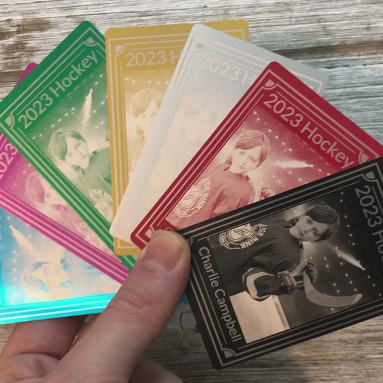 Create unique and timeless memories to share with family and friends with our Custom Trading Cards. Crafted with durable metal, these cards are waiting to impress. Customize them to showcase your favorite athletes and teams. Stand out from the crowd and showcase your talents with these one-of-a-kind trading cards.