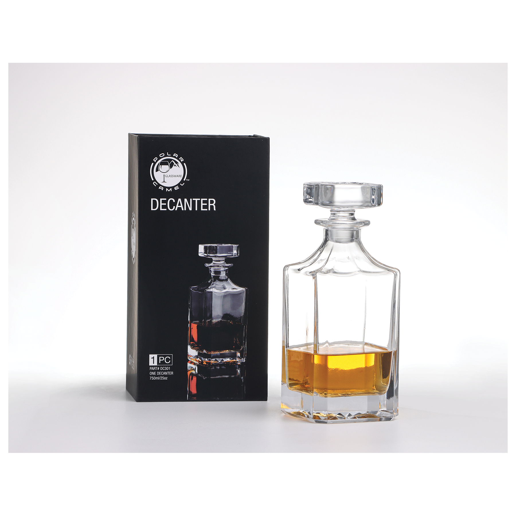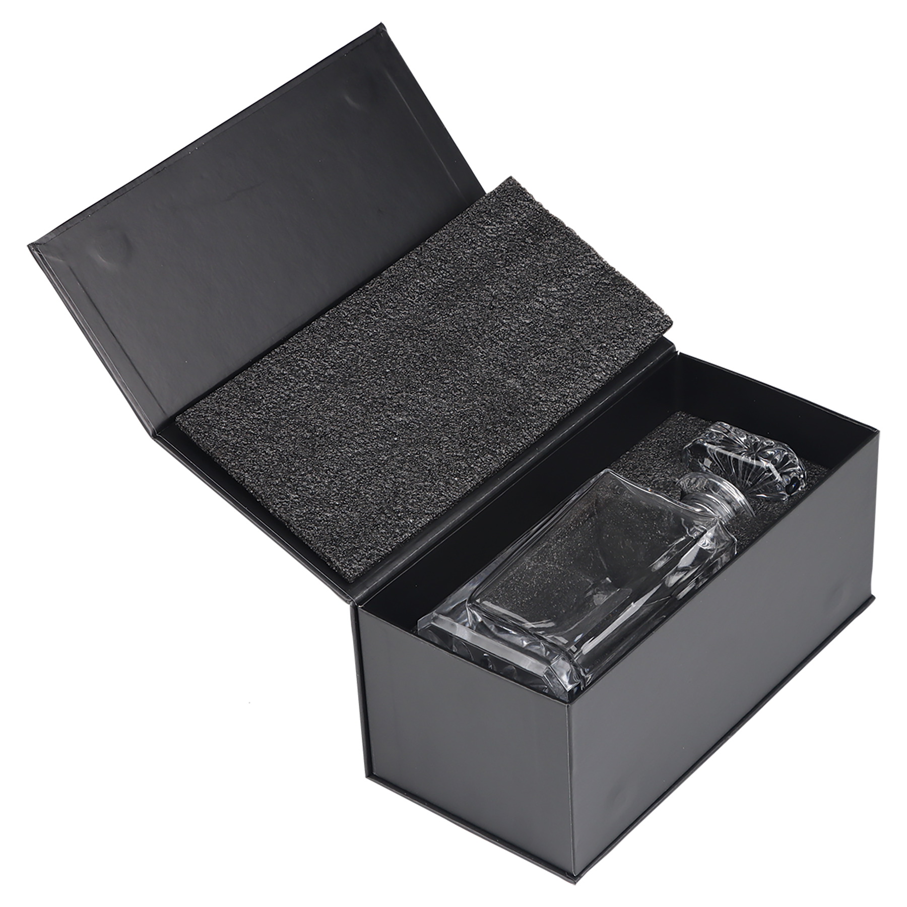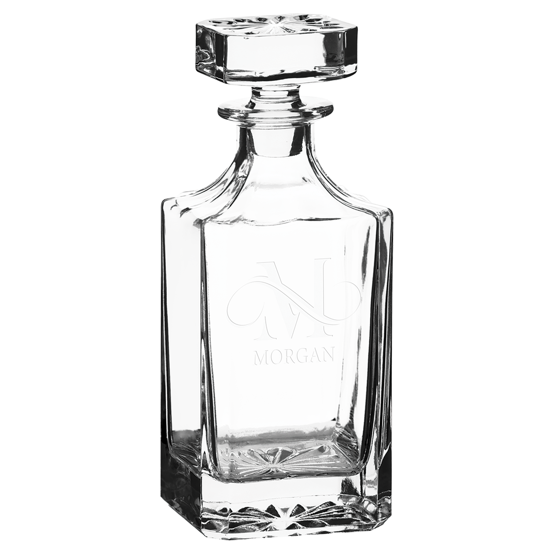 This beautiful glass square decanter can be personalized with a monogram, logo, or other graphics. The decanter is packaged in a sturdy black gift box with heavy EVA foam for protection and makes a great choice for a personalized promotional item, gift, or incentive for any occasion.